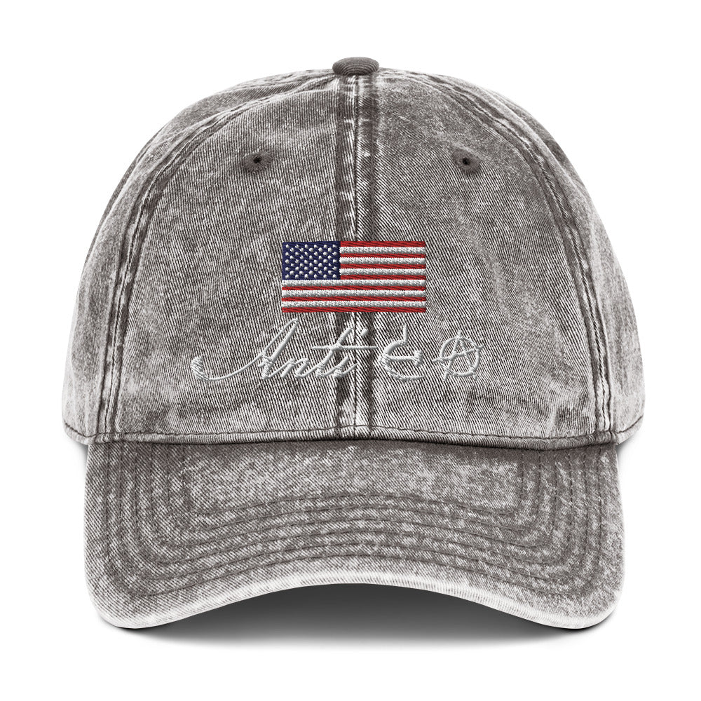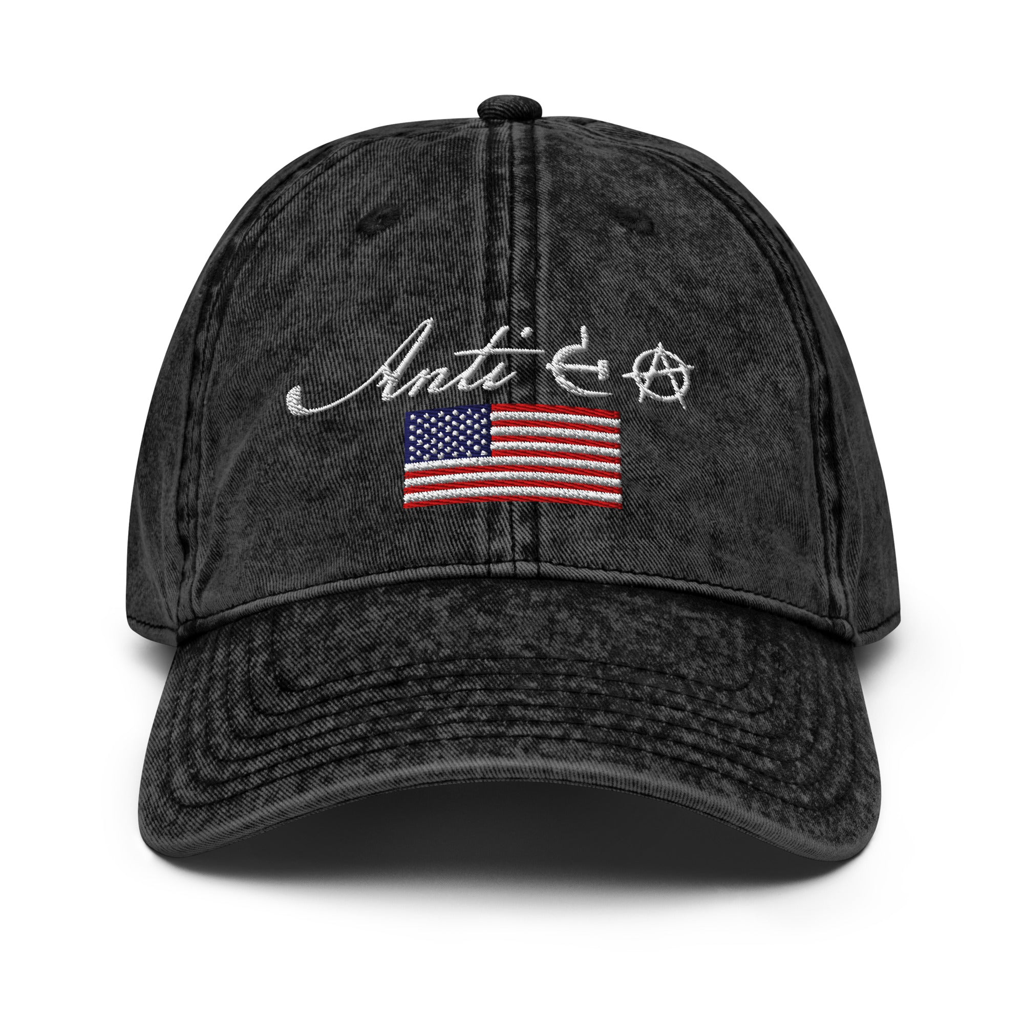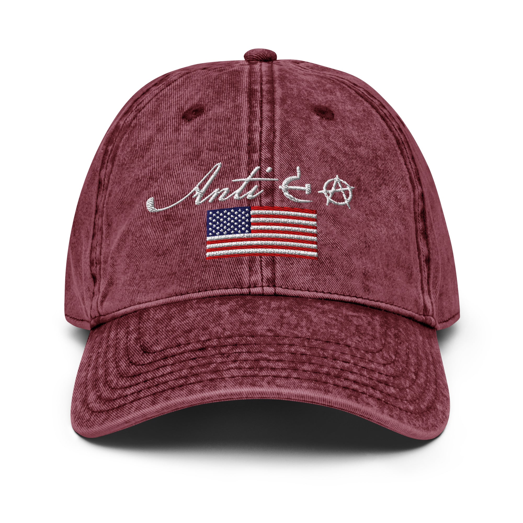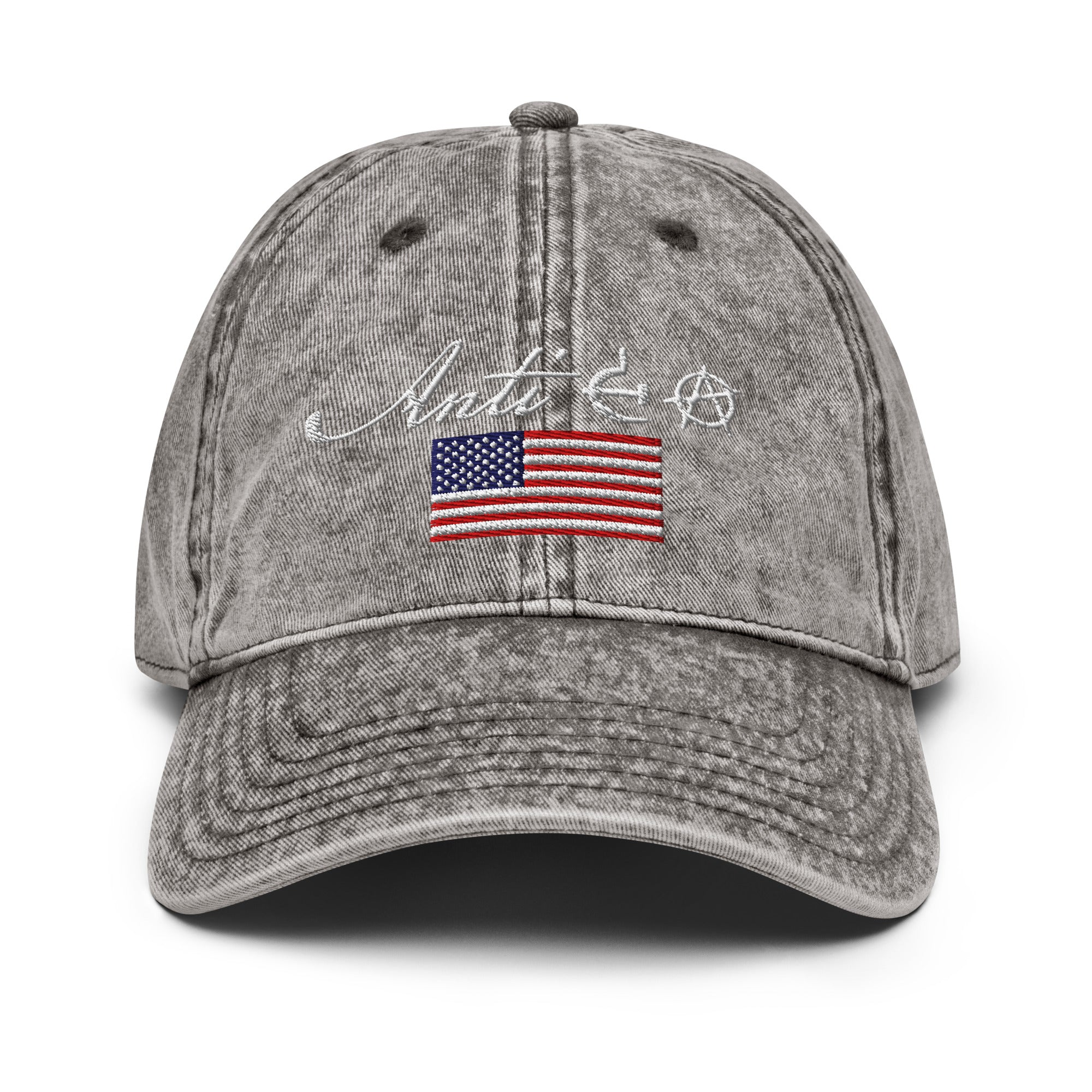 Vintage Cotton Twill Cap (US flag and AntiCA logo)